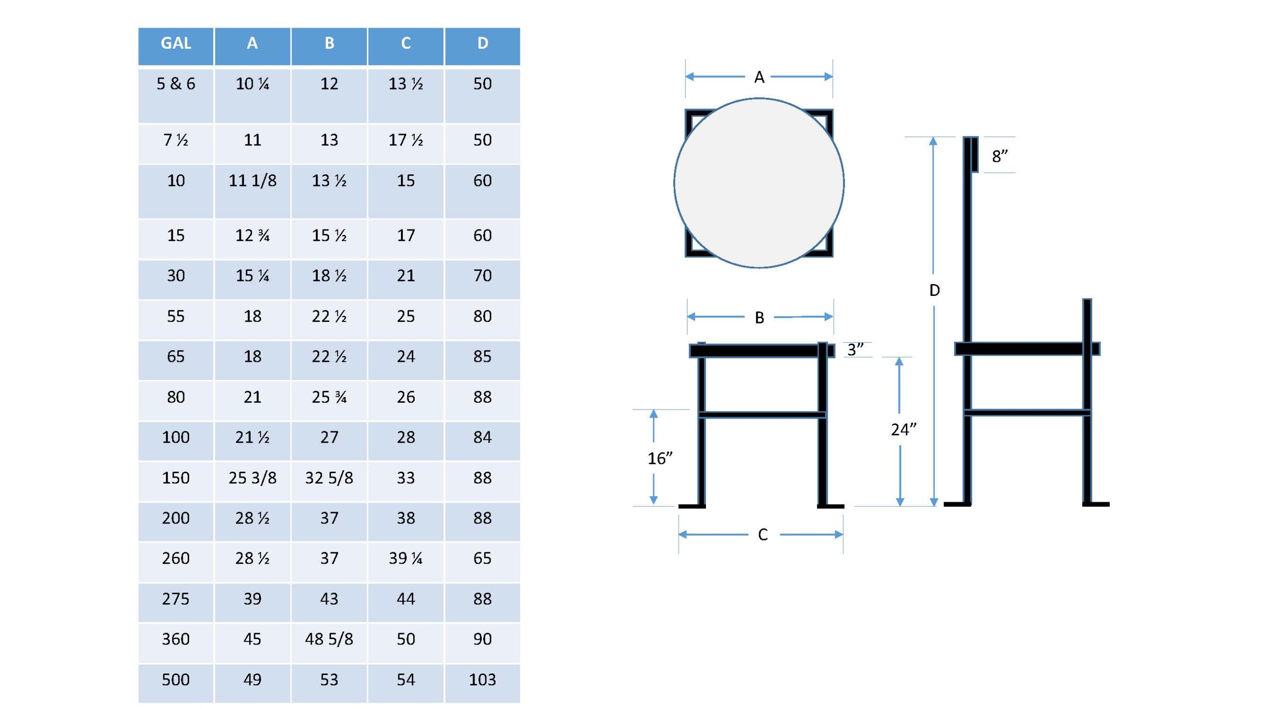 GAL: 10 | A: 11 1/8 | B: 13 1/2 | C: 15 | D: 60SKU: CTS-3